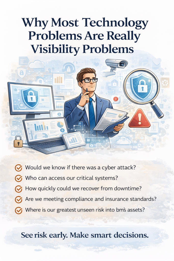 Most technology problems are not surprises. They are simply problems we could not see soon enough. Improving visibility is often the fastest path to stronger cybersecurity, smoother operations, and better leadership confidence.
